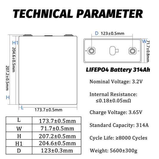 EU Stock Higee 3.2V 314Ah LiFePO4 Battery 8000 cycles Grade A LFP Cells Free Shipping 7-10days delivery