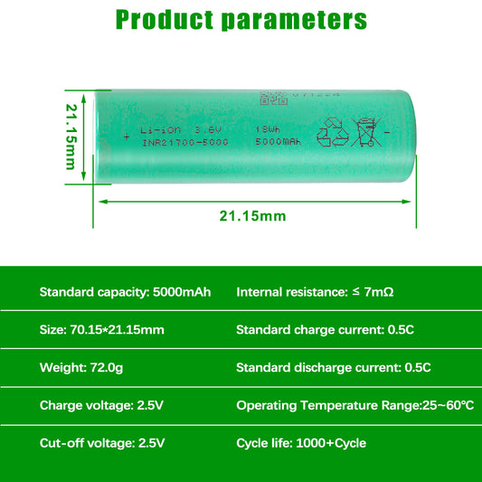 EVE INR21700-50PL 5000mAh - 70A 3.6V NMC Battery Cylindrical Cells For Military Drones,Drones, Scooter
