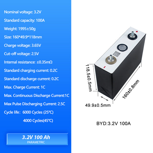BYD 3.2V 100Ah C49 LiFePO4 Battery Grade A+ Cycle Life 6000+ Rechargeable Cells for RV, EV, Boat