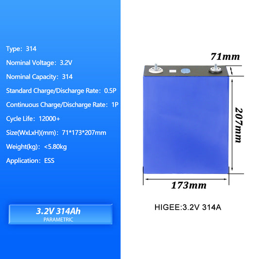 Higee 3.2V 314Ah LiFePO4 Battery 8000 cycles Grade A LFP Cells Free Shipping