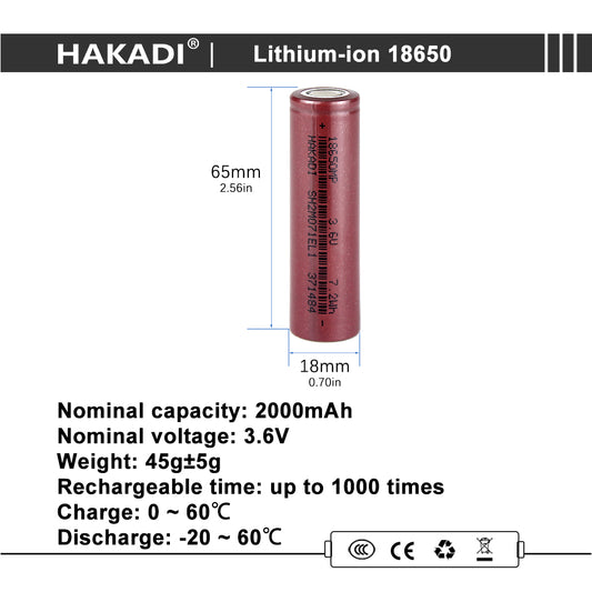 HAKADI 18650 3.7V 2000mah Rechargeable Lithium-ion Battery Cell For LED Flashlight Kid Toys Fish Finder