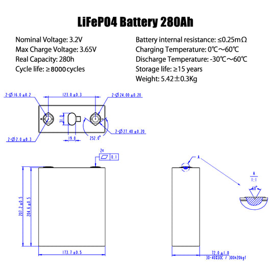 CALB L173F280A 3.2V 280Ah 9000+ Cycles LiFePO4 Grade A Prismatic Cells For Solar Energy System, RV, EV, PV