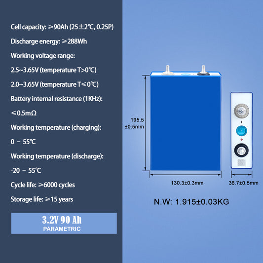 LiFePO4 (Lithium Iron Phosphate, LFP) cells are a version of a lithium-ion battery with a cell voltage of 3.2V. LiFePo4 cells are known for longevity (about 2,000 charge and discharge cycles) and are suitable for applications where long service life is required, such as in electric vehicle, electric bikes, scooters, boats, submarines, golf carts, communications, energy storage, Intelligent network, UPS systems, etc.