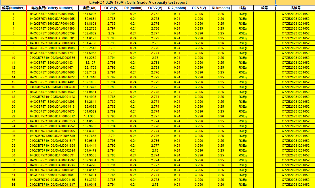 We EVE 173Ah battery is brand new and of Grade A quality. It comes with a QR code serial number and a factory inspection report that allows you to trace its origin.