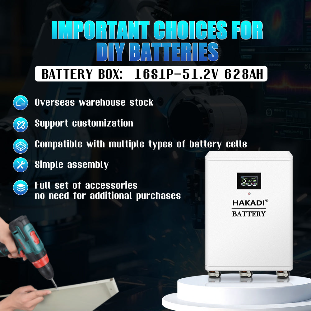 HAKADI 48V EVE MB56 628Ah Diy Battery Box 16S 32Kwh V19 JK BMS 300A For Off-Grid Backup,Solar