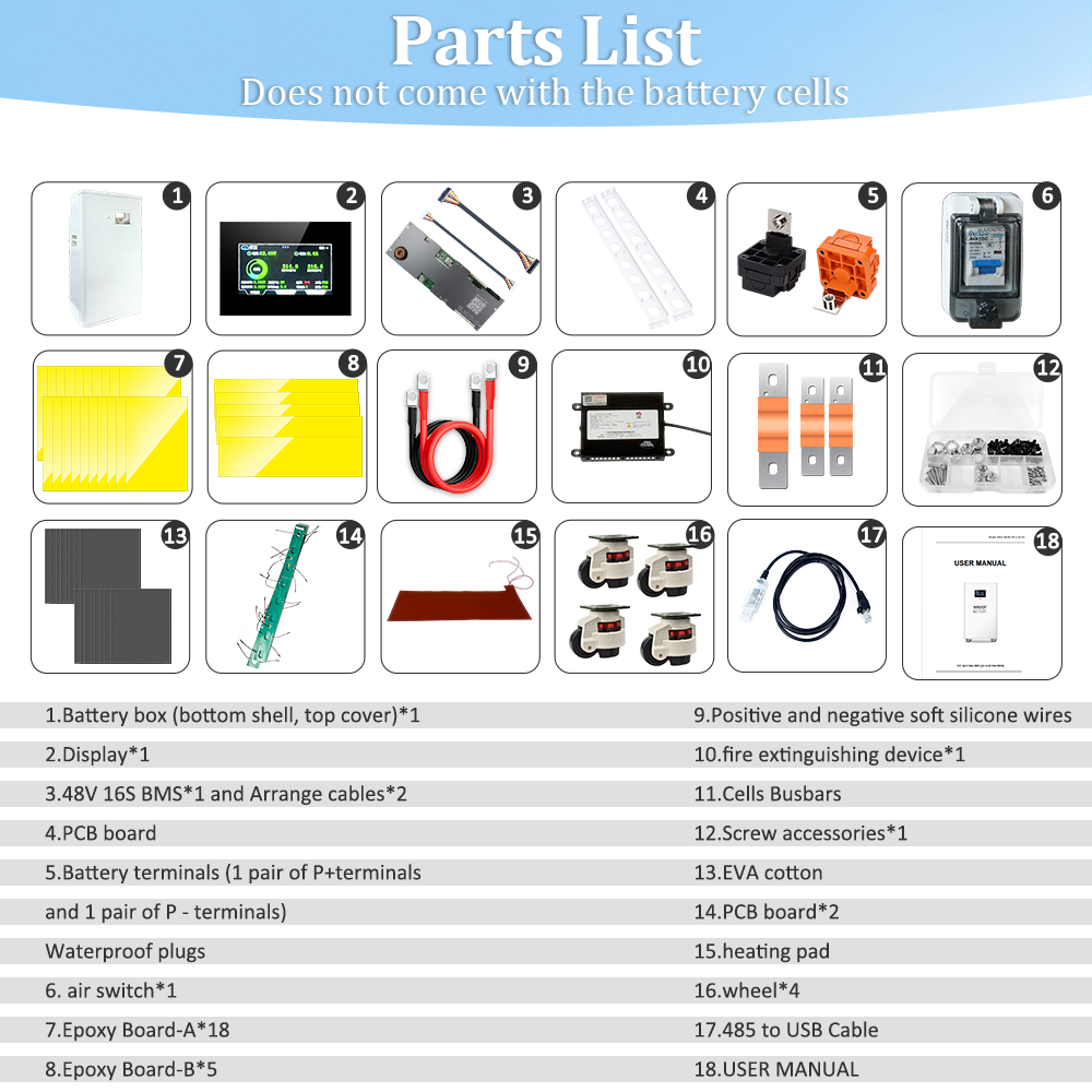 Specification(Battery Vertical JK BMS V19 DIY Box with wheels)