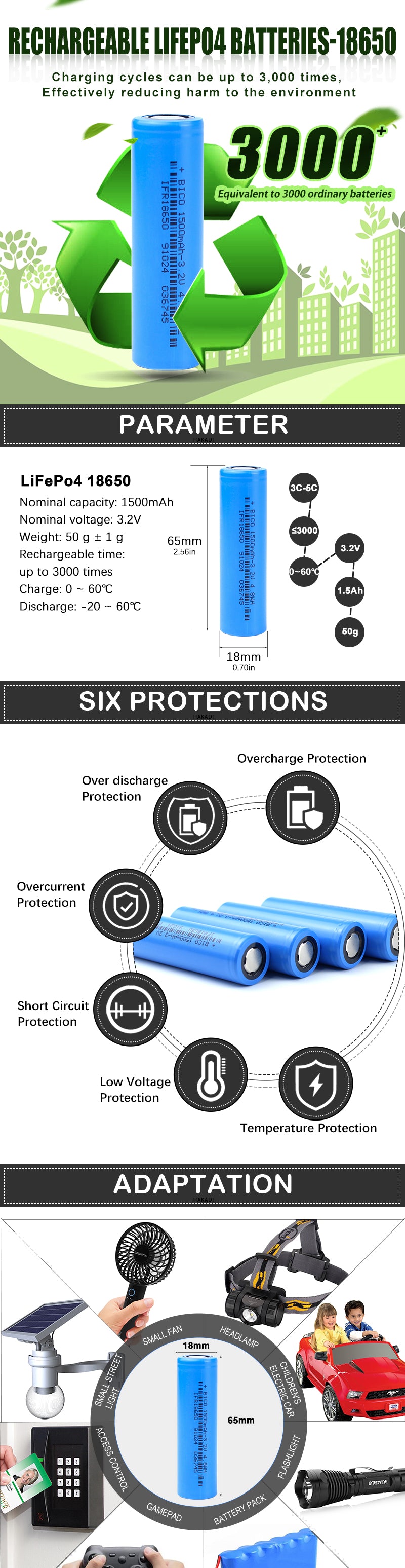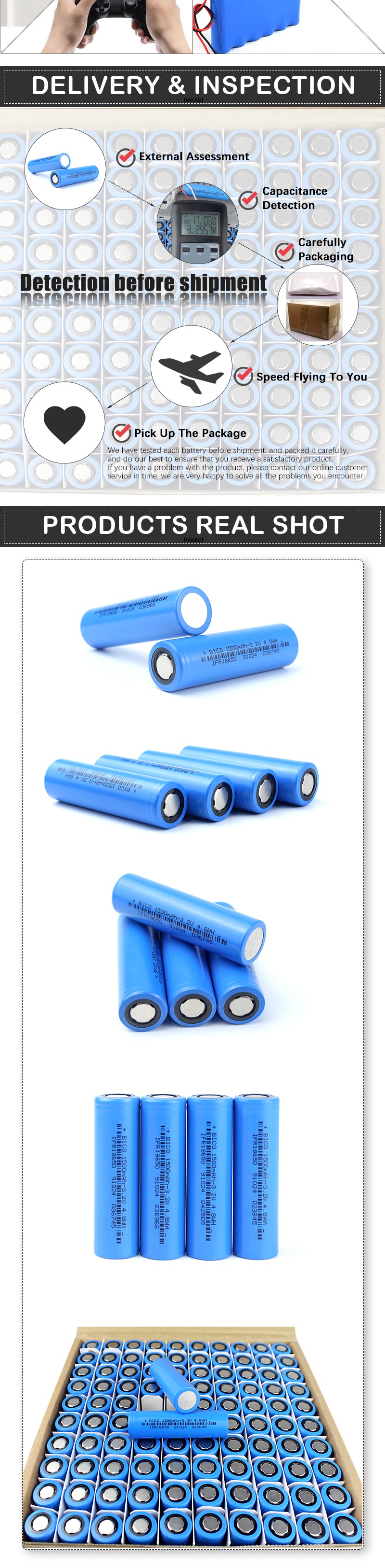 HAKADI Lifepo4 18650 3.2V 1500mah Rechargeable Battery Cell 3C-5C Discharge For DIY Battery Pack Kid Car